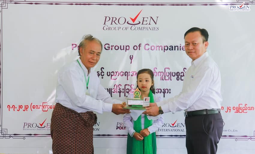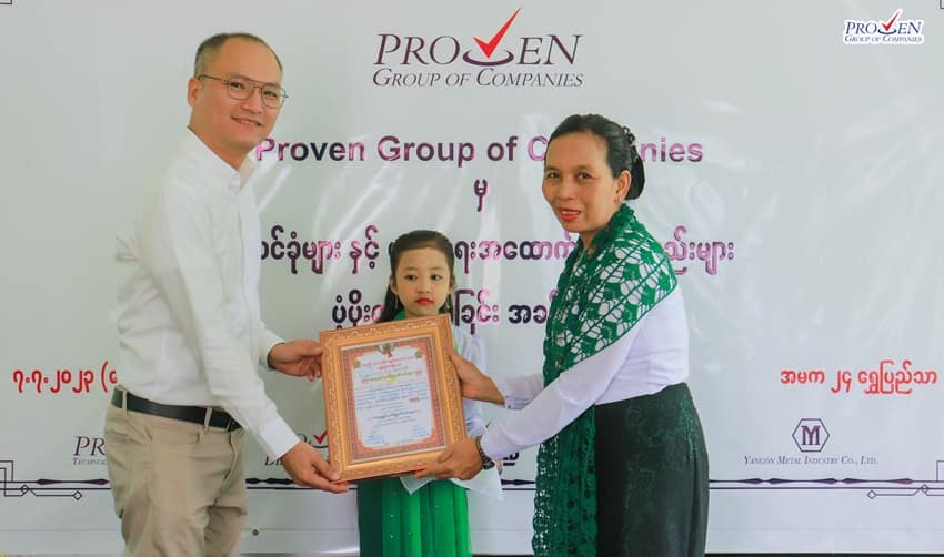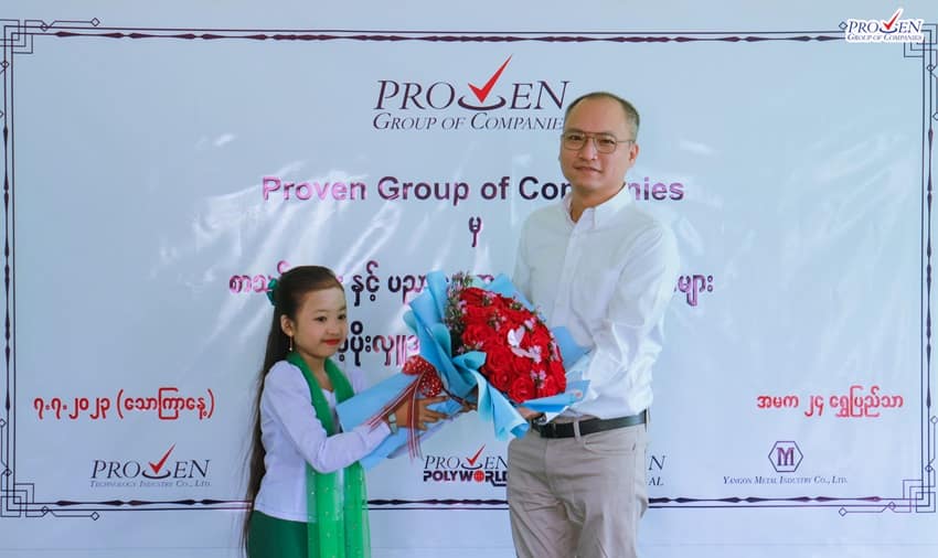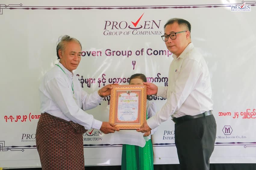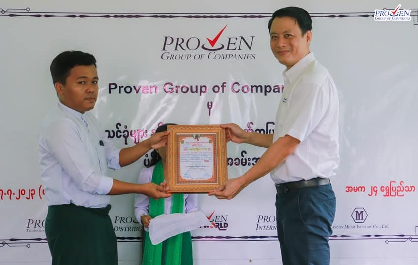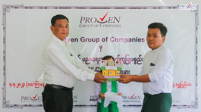 TOYO နှင့် Lion Battery များ ထုတ်လုပ်ဖြန့်ချီလျှက်ရှိသည့် Proven Group of Companies ၏လူမှုအကျိုးပြုအစီအစဥ်တစ်ရပ်အနေဖြင့်ရန်ကုန်တိုင်း ရွှေပြည်သာမြို့နယ်ရှိ အမက (၂၄ )မူလတန်းကျောင်းတွင် စာသင်ခုံများ နှင့် ပညာရေး အထောက်အကူပြုပစ္စည်းများအတွက် စုစုပေါင်း တန်ဖိုး ကျပ် သိန်း (၅၀) အား ပံ့ပိုးလှူဒါန်းခဲ့ပါသည်။