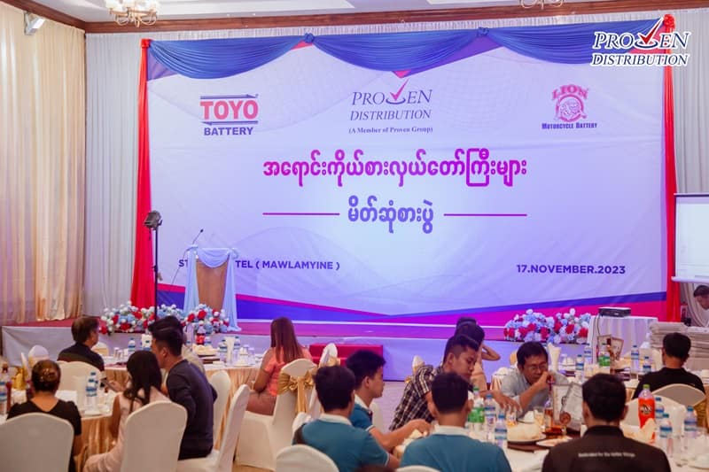 PROVEN DISTRIBUTION CO., LTD. ( A Member of Proven Group) မှ (17.11.2023) သောကြာနေ့တွင် မော်လမြိုင်မြို့ရှိ ” Strand Hotel ” ၌အရောင်းကိုယ်စားလှယ်ကြီးများ ဂုဏ်ပြုညစာစားပွဲ အခမ်းအနားကို ကျင်းပပြုလုပ်ခဲ့ပါသည်။
