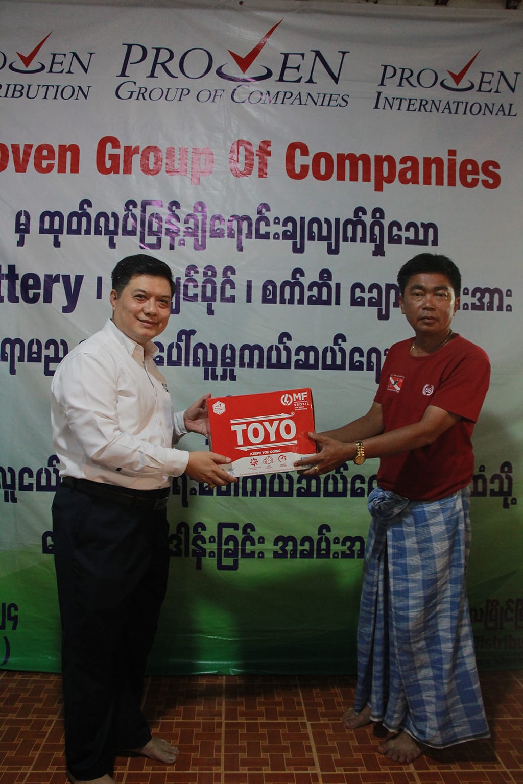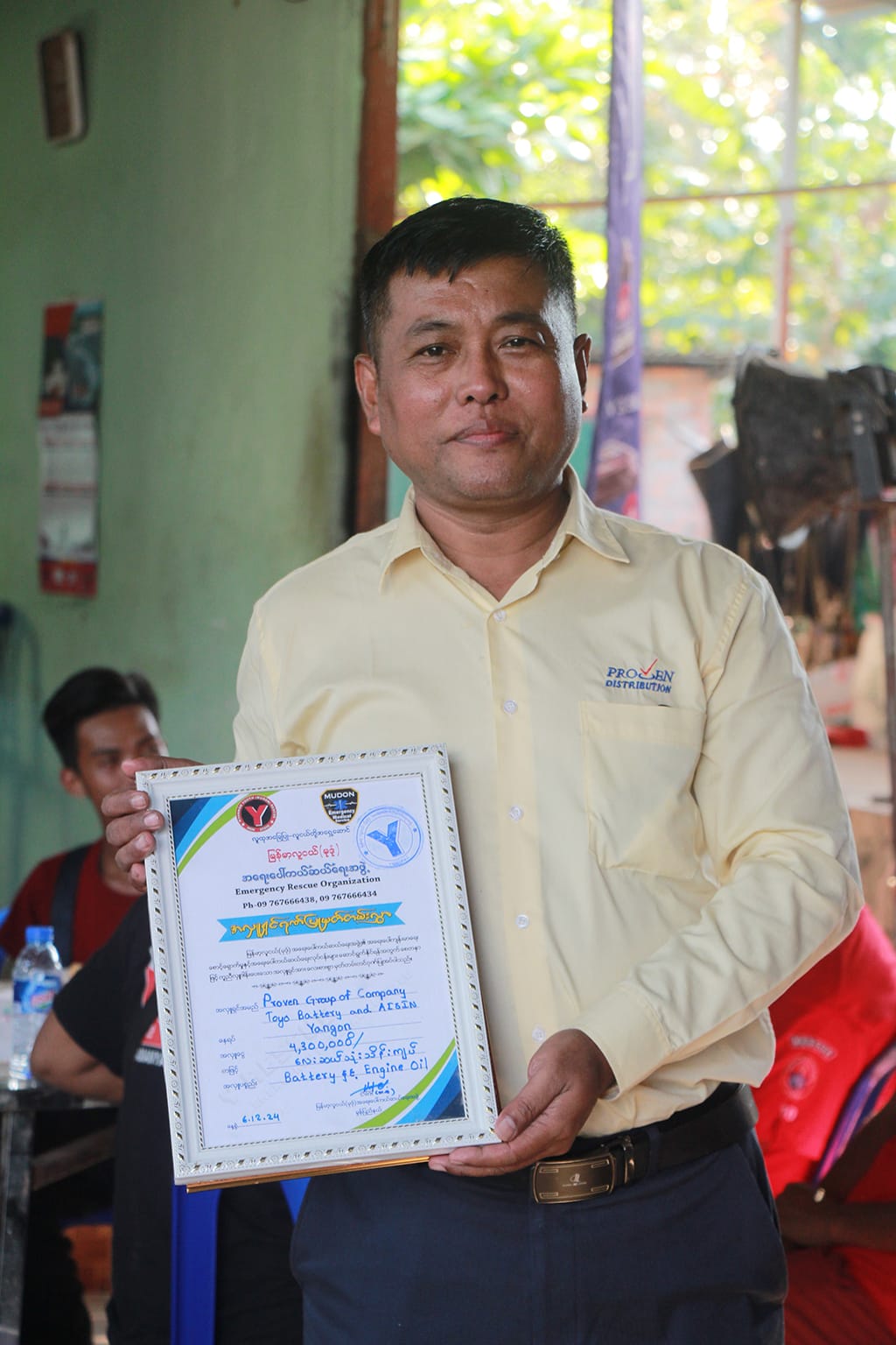 Proven Group of Companies Limited နှင့် ညီနောင် ကုမ္ပဏီများဖြစ်ကြသည့် Proven Distribution Company Limited နှင့် Proven International Company Limited တို့မှ မွန်ပြည်နယ်၊ မော်လမြိုင်မြို့ရှိ လူမှုအကျိုးပြုအဖွဲ့အစည်းများဖြစ်ကြသည့် ရာမညအရေးပေါ်လူမှုကယ်ဆယ်ရေး အဖွဲ့နှင့် မြန်မာလူငယ် (မုဒုံအရေးပေါ်ကယ်ဆယ်ရေးအဖွဲ့) တို့အား မိမိတို့ Company မှ ထုတ်လုပ်ဖြန့်ချီရောင်းချလျှက်ရှိသည့် Battery၊ အင်ဂျင်ဝိုင် နှင့် စက်ဆီချောဆီများပေးအပ်လှူဒါန်းခြင်း အခမ်းအနားကို ( ၆ ဒီဇင်ဘာ ၂၀၂၄) ရက် (သောကြာနေ့)တွင် ရာမည အရေးပေါ်လူမှုကယ်ဆယ်ရေးအဖွဲ့ ရုံးခန်းနေရာ၌ ကျင်းပပြုလုပ်ခဲ့ပါသည်။