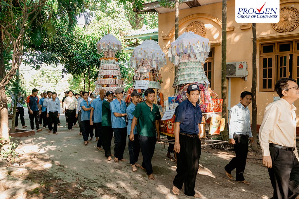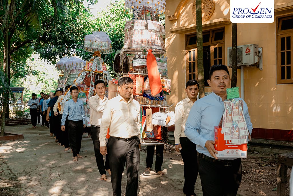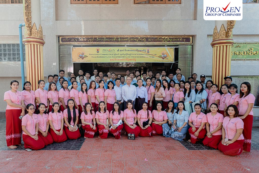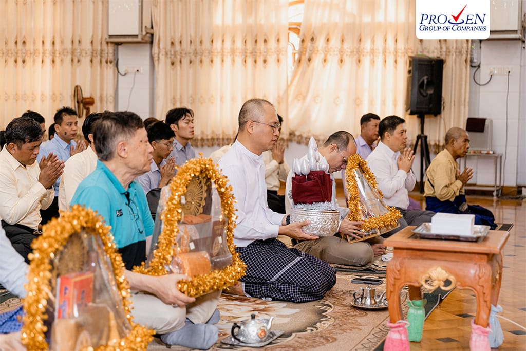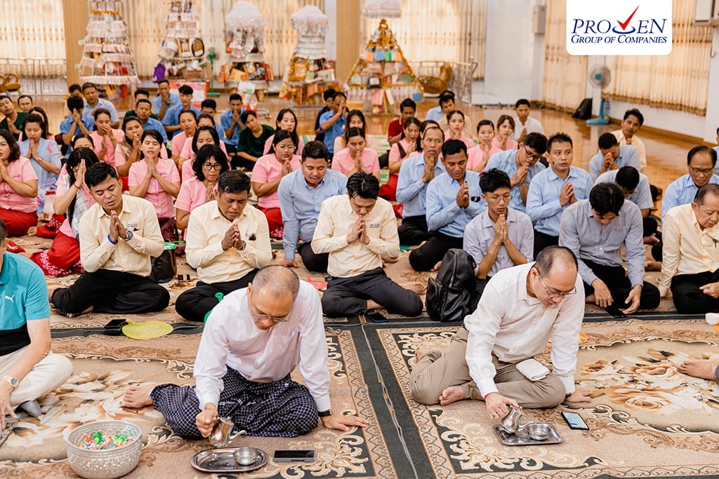 Proven Group of Companies Ltd. နှင့် ညီနောင်ကုမ္ပဏီများဖြစ်သည့် Proven Technology Industry Co., Ltd ၊ Proven Distribution Co., Ltd ၊ Proven Polyworld Co., Ltd၊ Proven International Co., Ltd တို့၏ စုပေါင်းပဒေသာပင်ပို့ဆောင်ပွဲကို ၂၀၂၄ ခုနှစ်၊ နိုဝင်ဘာလ (၁၄) ရက် ( ကြာသပတေး) နေ့တွင် ရန်ကုန်တိုင်းဒေသကြီး၊ ရွှေပြည်သာမြို့နယ်၊ အမှတ်(၄)လမ်းမကြီး၊ (၂၄)ရပ်ကွက် (ဇီးကုန်းကျေးရွာအုပ်စု)အတွင်းတည်ရှိသော ရွှေမြို့ဝင် ဇီးကုန်းကျောင်းတိုက်၌ ဝါတွင်းသုံးလ ကာလပတ်လုံး ဝါကျိုး၊ ဝါပျက်မရှိဘဲ သီတင်းသုံးတော်မူသော သံဃာတော်များအား ကထိန်လျာသင်္ကန်း၊ ငွေပဒေသာပင်နှင့် လှူဖွယ်ပစ္စည်းများရေစက်သွန်းချလှူဒါန်းခဲ့ပါသည်။ ကြွရောက်ပေးကြပါသော Customer များ၊ Supplier များ၊ Proven Group ၏ ဒါရိုက်တာအဖွဲ့ဝင်လူကြီးမင်းများနှင့် ညီနောင်ကုမ္ပဏီမှ ဝန်ထမ်းညီအစ်ကိုမောင်နှမများ အားလုံးကို ကျေးဇူးအထူးပင်တင်ရှိပါသည်။