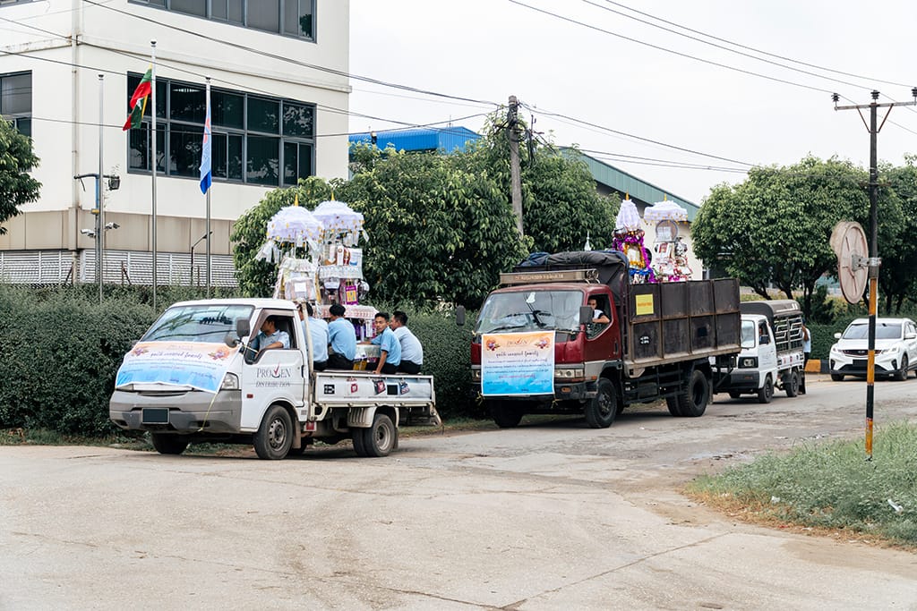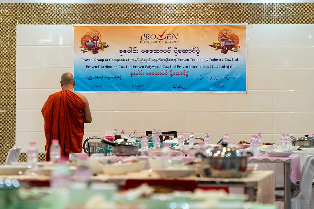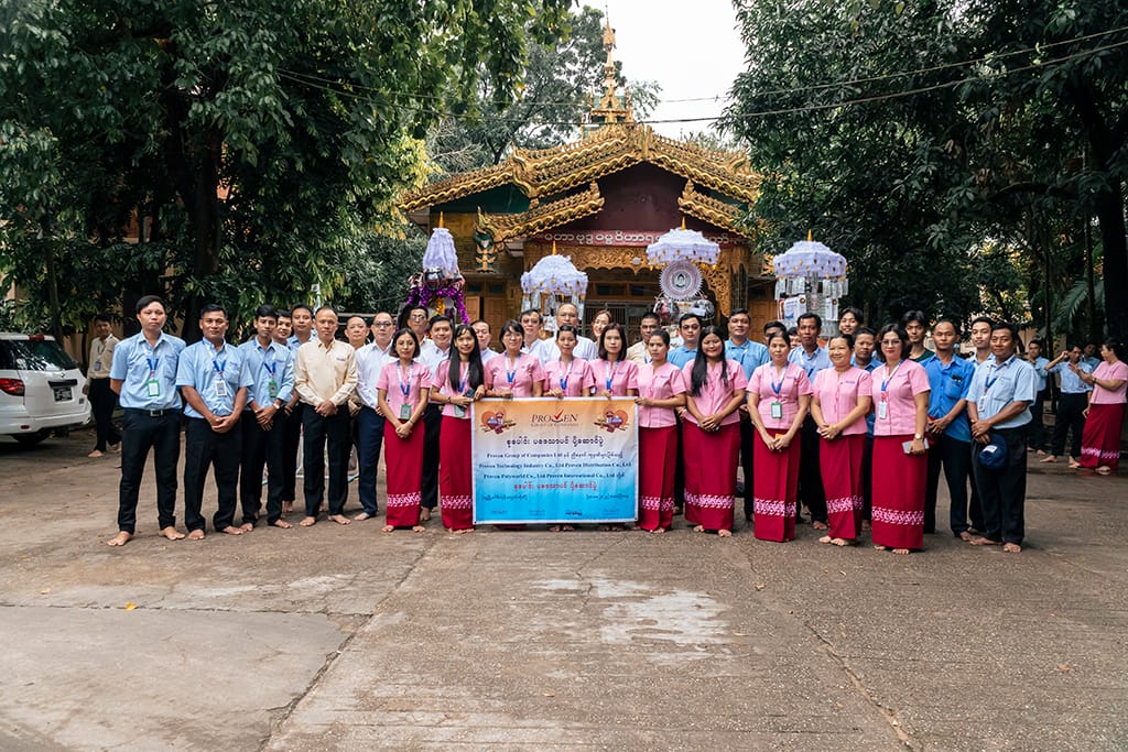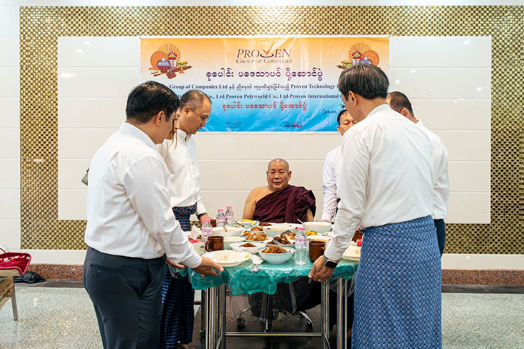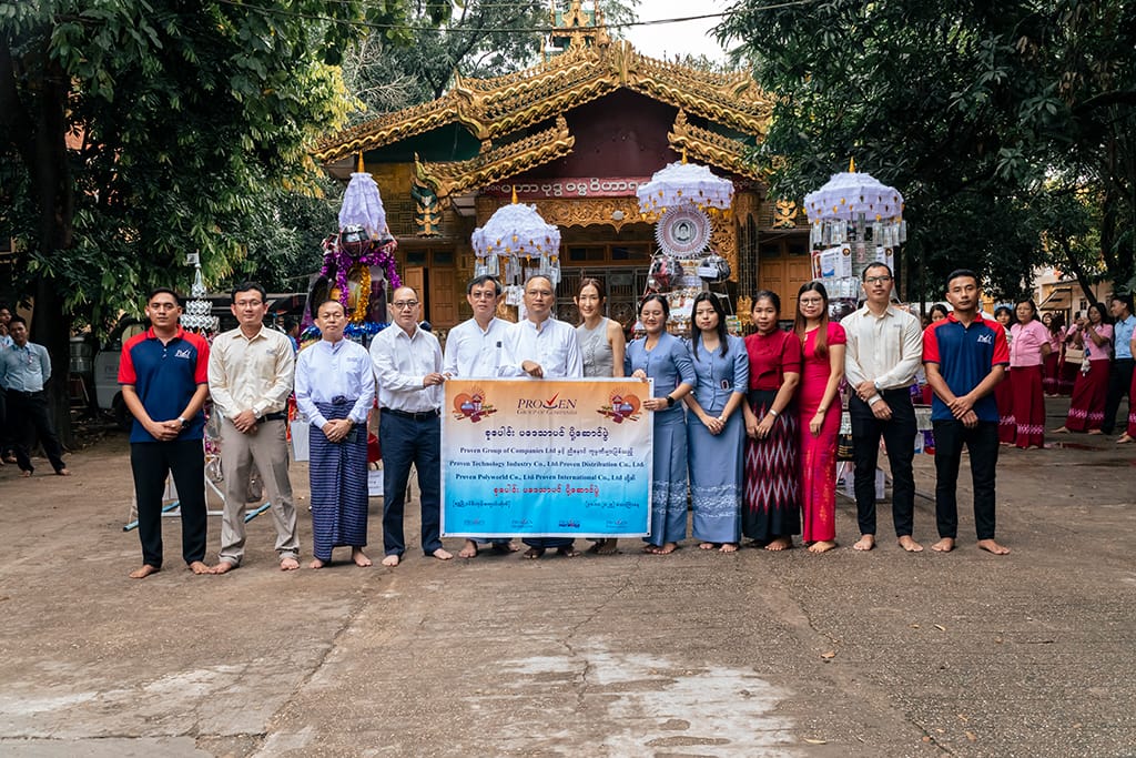Proven Group of Companies Ltd. နှင့် ညီနောင်ကုမ္ပဏီများဖြစ်သည့် Proven Technology Industry Co., Ltd ၊ Proven Distribution Co., Ltd ၊ Proven Polyworld Co., Ltd၊ Proven International Co., Ltd တို့၏ စုပေါင်းပဒေသာပင်ပို့ဆောင်ပွဲကို ၂၀၂၅ ခုနှစ်၊ အောက်တိုဘာလ (၃၁) ရက် ( သောကြာနေ့) နေ့တွင် ရန်ကုန်တိုင်းဒေသကြီး၊ ရွှေပြည်သာမြို့နယ်၊ အမှတ်(၄)လမ်းမကြီး၊ (၂၄)ရပ်ကွက် (ဇီးကုန်းကျေးရွာအုပ်စု)အတွင်းတည်ရှိသော ရွှေမြို့ဝင် ဇီးကုန်းကျောင်းတိုက်၌ ဝါတွင်းသုံးလ ကာလပတ်လုံး ဝါကျိုး၊ ဝါပျက်မရှိဘဲ သီတင်းသုံးတော်မူသော သံဃာတော်များအား ကထိန်လျာသင်္ကန်း၊ ငွေပဒေသာပင်နှင့် လှူဖွယ်ပစ္စည်းများရေစက်သွန်းချလှူဒါန်းခဲ့ပါသည်။ ကြွရောက်ပေးကြပါသော Customer များ၊ Supplier များ၊ Proven Group ၏ ဒါရိုက်တာအဖွဲ့ဝင်လူကြီးမင်းများနှင့် ညီနောင်ကုမ္ပဏီမှ ဝန်ထမ်းညီအစ်ကိုမောင်နှမများ အားလုံးကို ကျေးဇူးအထူးပင်တင်ရှိပါသည်။