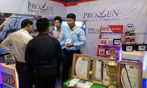 မြန်မာ့ကုန်သွယ်စီးပွားပွဲတော် (2018) တွင် TOYO ၏ Japanese Industrial Standards အရည်အသွေးပြည့် ပြည်တွင်းထုတ်ဘက်ထရီ ကိ်ုအင်းယားလိတ်ဟိုတယ်ဝင်းအတွင်းရှိ Yangon Convention Center(YCC)တွင် ကျင်းပပြုလုပ်ပွဲအခန်းအနား။